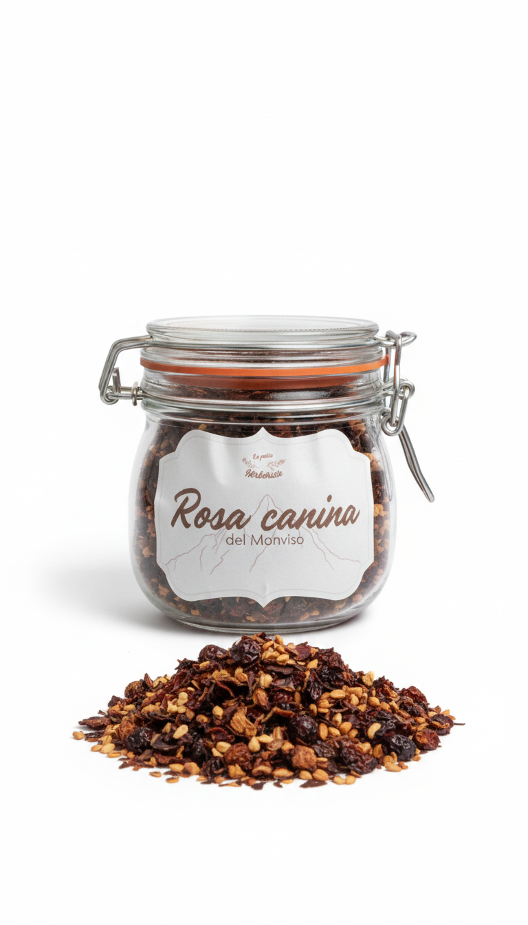Frutti selezionati di rosa canina, dal gusto leggermente acidulo e fruttato.