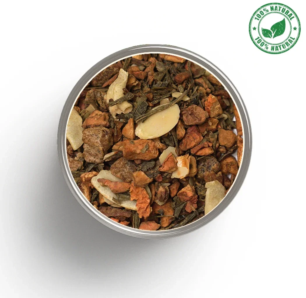 Mela, dattero (dattero, farina di riso), tè verde China Sencha, grano saraceno tostato, cocco (cocco, grasso di cocco, zucchero), MANDORLA, aroma, tè verde Matcha.